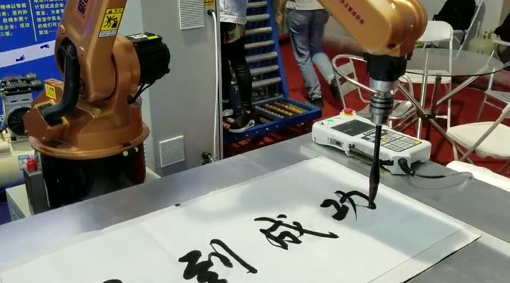 匯興智造推崇中國傳統文化,一直以傳承弘揚中國文化為己任,把中國傳統文化揉入工廠運營、產品設備已是一派自然而然。由匯興智造自主研發的書法機器人在本次博覽會上大展拳腳,深情演繹中國書法。