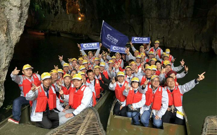 旅途第三站:洞天仙境。洞口有一巨大的鐘乳石向下垂吊,從巖洞口乘船而入,在眾多奇姿怪態的鐘乳間穿掠。穿過一段狹窄的地方進入到洞內,視野豁然開朗,有綠樹、蔓草、野花,抬頭仰望,洞中有天,洞天相連,讓人嘆為觀止。“夢想之旅”的團隊成員們在感嘆大自然的神奇時,也表示天外有天,人外有人,只有不斷前行,才有更廣闊的天地。邊走邊看,邊看邊想,“夢想之旅”讓匯興智造的骨干們看得更遠,想得更深,真是不虛此行。