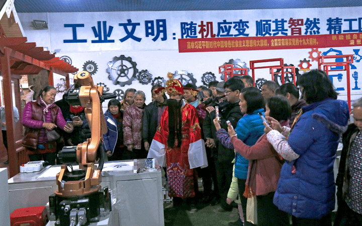 活動現(xiàn)場,匯興智造黨支部、工會委員會、團(tuán)工委等工作人員裝扮成財神為老人送上新年利是,陪伴老人一同參觀匯興智造工業(yè)4.0智能裝備體驗館,體驗智能制造“隨機(jī)應(yīng)變”“順其智然”改變傳統(tǒng)生產(chǎn)的魅力;觀看由匯興智造員工自編自演的京劇舞蹈廠歌等文藝節(jié)目,感受匯興智造“用情做人、用心做事”,“敬天愛人,孝道為先”的文化力量。